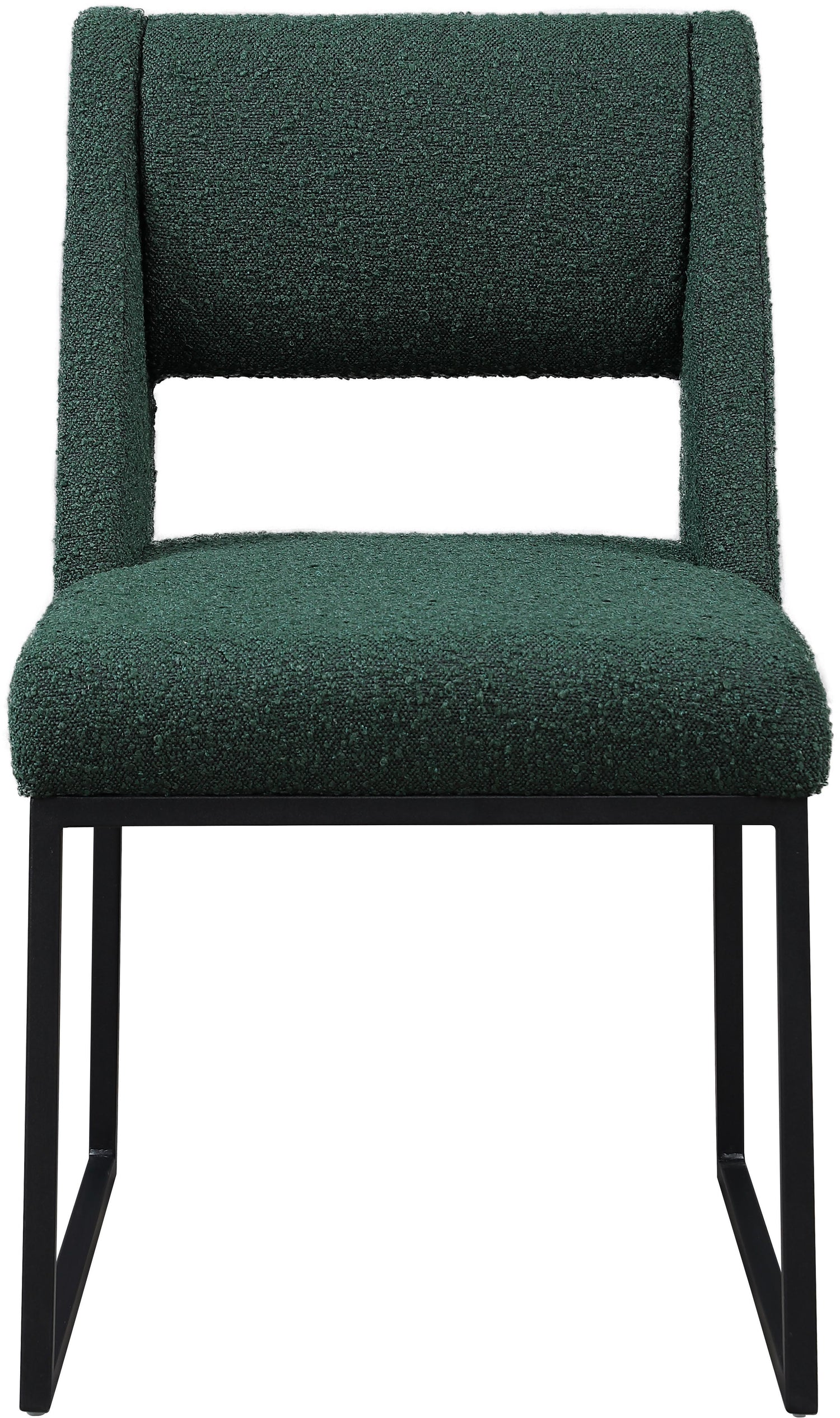 Give your dining area a contemporary makeover with this Jayce cream boucle fabric dining chair. Featuring a matte iron base and rich boucle fabric, this dining chair is both sturdy and cozy. Its contemporary design is ideal for any modern home, and its neutral color matches any color dining table. Its plush boucle upholstery provides you with a comfortable pace to sit, and its open rectangular back is stylish while adding spine support.