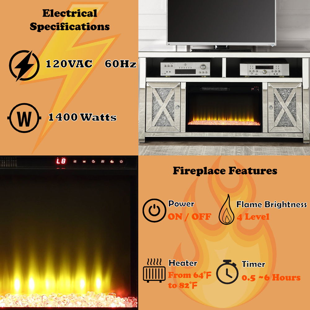 • Materials: Fireplace, Composite Wood, Mirror, Acrylic Diamond