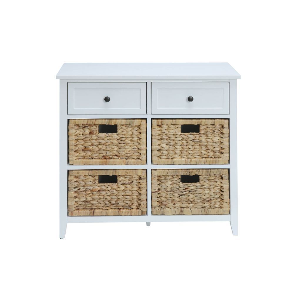 Get exceptional value on this transitional Filbert chest. Featuring a rich finish, the drawers and open compartment spaces give plenty of room for storage. The table looks great with or without the included wicker crate baskets. Some Assembly Required.