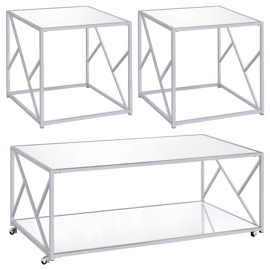 Provins - 3 Piece Occasional Table Set - Clear Mirror And Chrome
