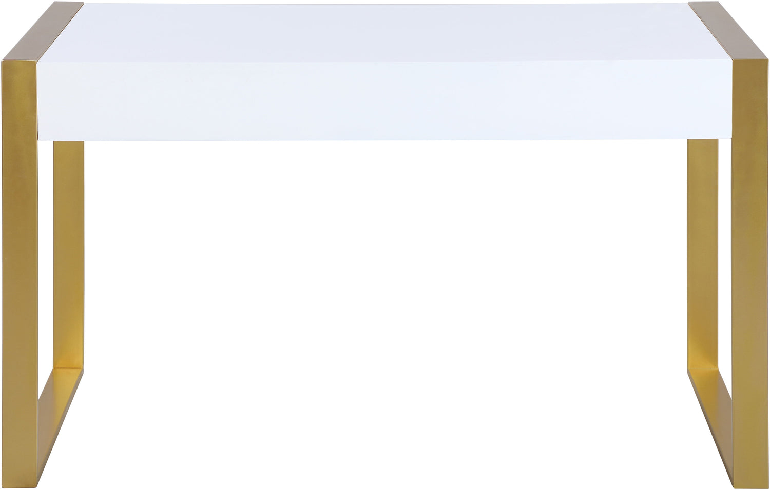 Be productive and stylish at the same time when you're seated at this Victoria desk. Designed to pull double-duty as a console table, this conveniently versatile desk offers two drawers for holding all the supplies you need to get your work done. An ample top surface gives you room for your laptop or other equipment. A high-end lacquer finish keeps the desk's beautiful demeanor despite your hard work, and brushed gold legs and acrylic handles lend the desk a definitive modern look.