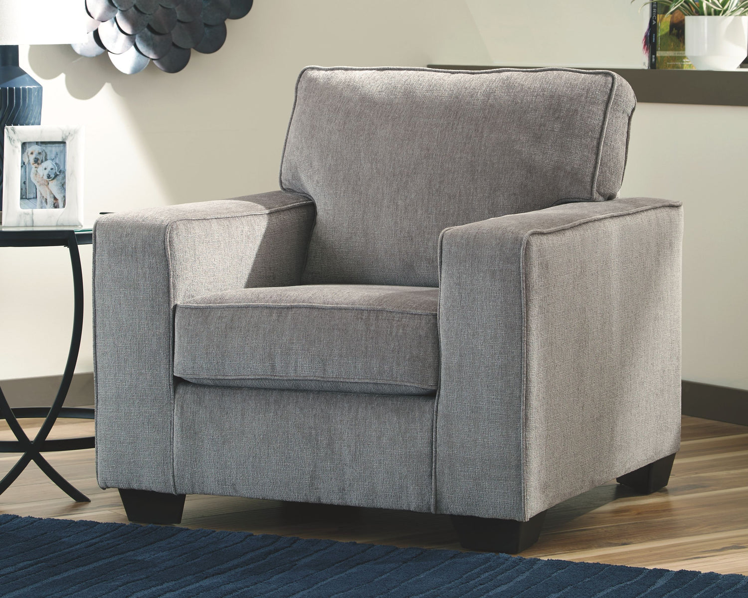 If style is the question, then the Altari chair is the answer. Its decidedly contemporary profile is enhanced with plump cushioning and a chenille-feel upholstery, so pleasing to the touch. Rest assured, this chair in slate gray is sure to play well with so many color schemes.