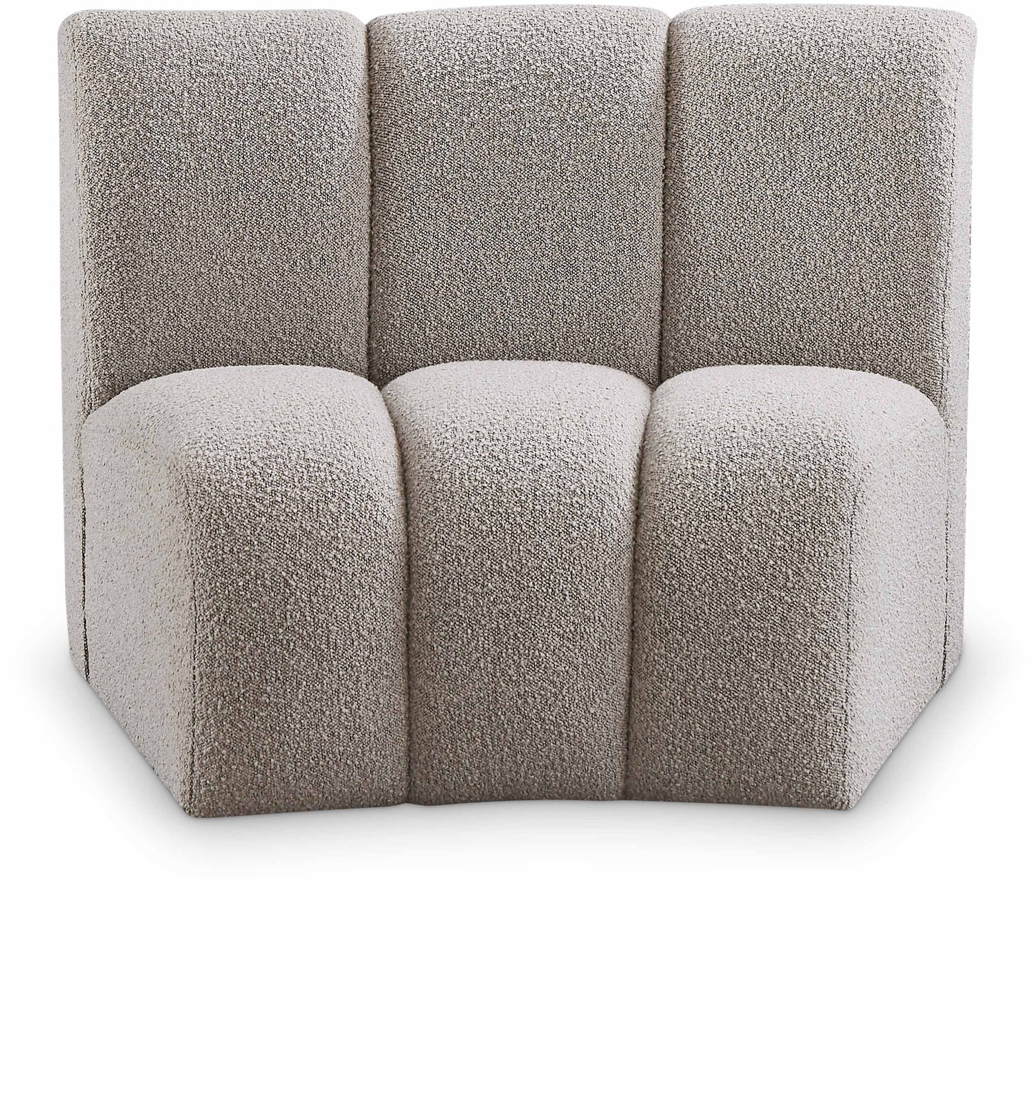 Mix and match this Infinity boucle fabric modular chair with other items in the Infinity collection to find the best possible seating solution for your gang. Rich taupe boucle fabric feels welcoming and soft to the skin, so you stay seated comfortably for the big game or while watching your favorite programs. Deep channel tufting adds to the longevity and durability of this modular chair while giving it texture.
