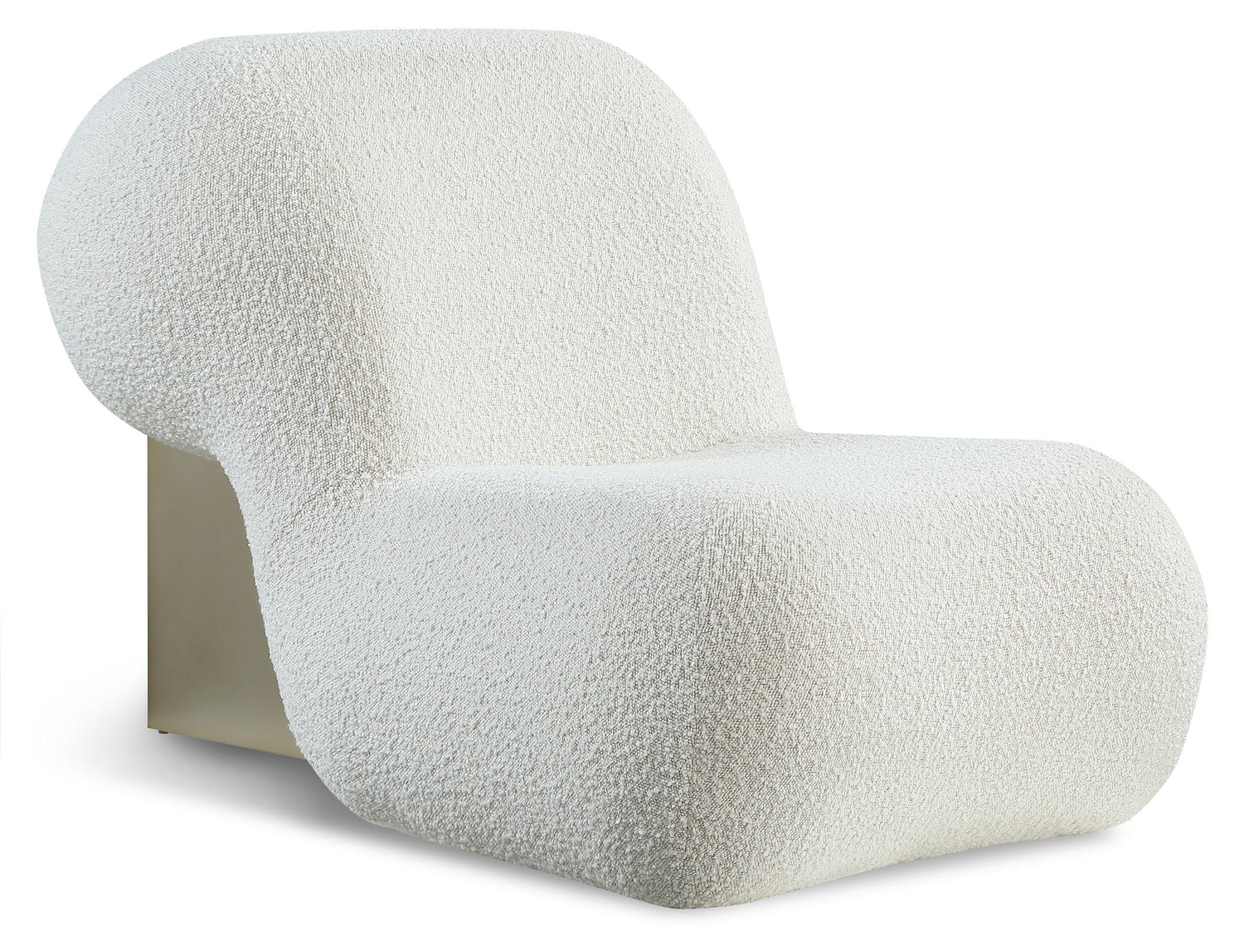 Lounge the day away from the comfort of this cream Quadra boucle fabric accent chair. Perfect to set a casual vibe in any room, this accent chair offers a slanted back to help you position yourself comfortably for an evening of binge watching your favorite programs. An iron metal frame ensures long-lasting performance, while a rich cream teddy fabric upholstery adds welcoming softness.