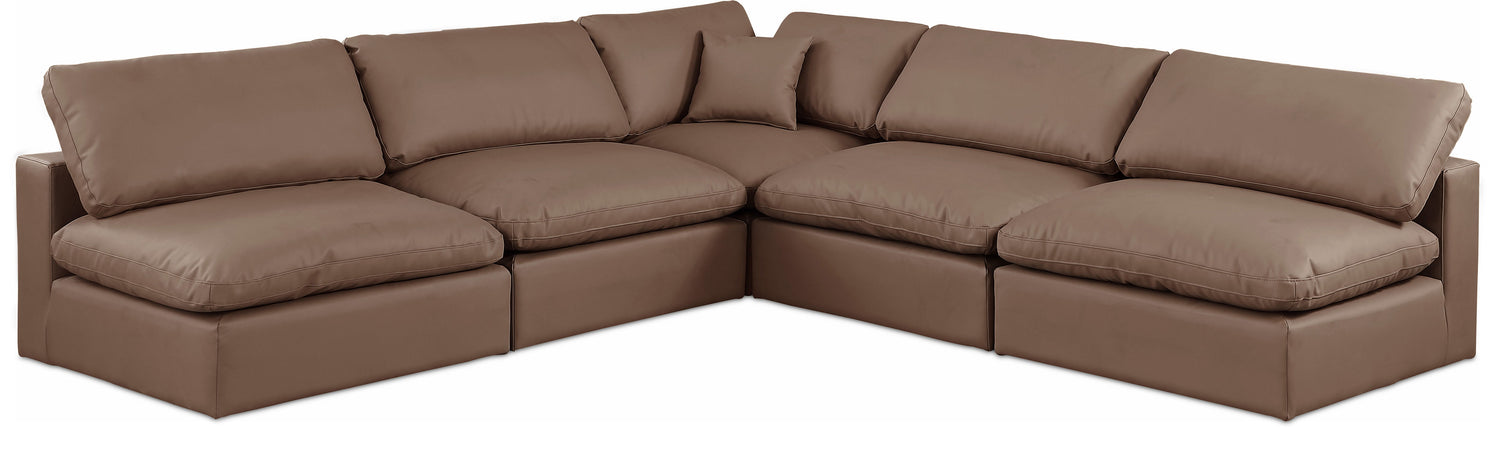 Comfy - 5 Piece Faux Leather Modular Corner Armless Sectional - Brown