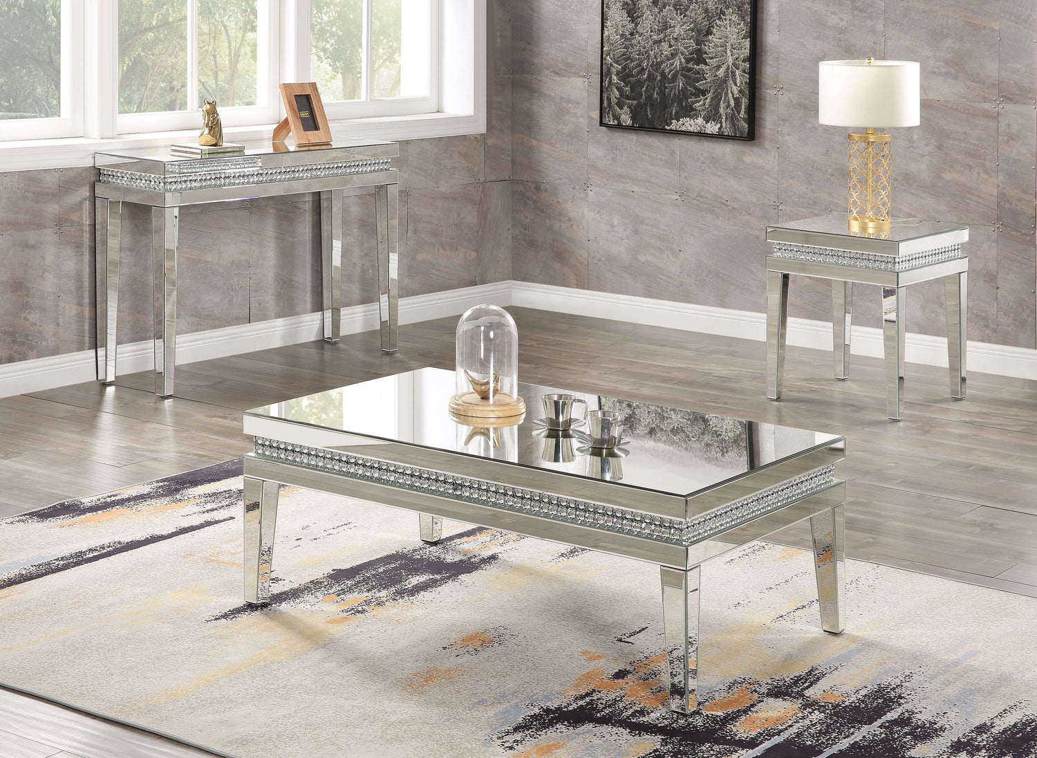 Lotus - Coffee Table - Mirrored & Faux Crystals Inlay