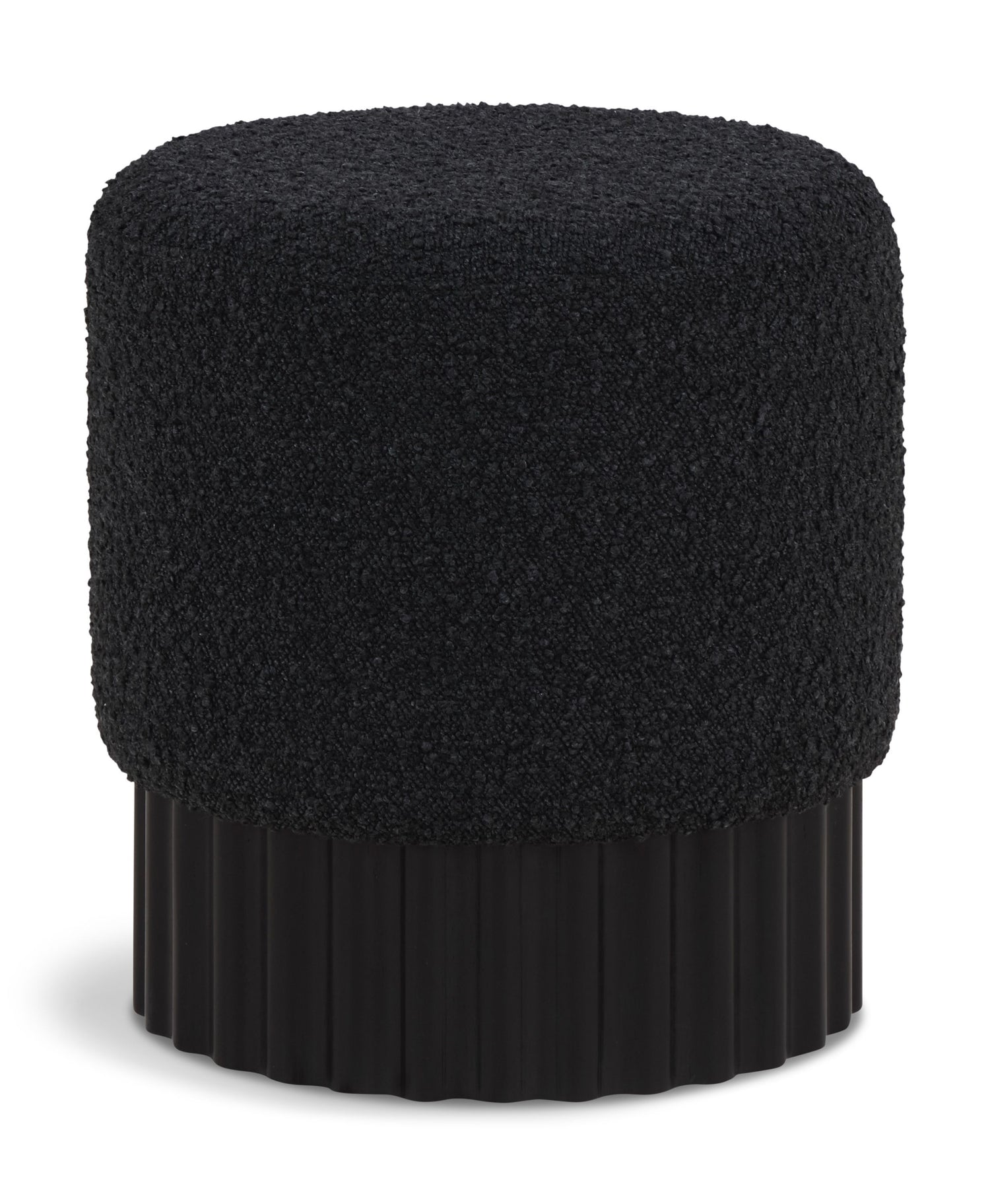 Indulge in the luxurious texture of the Veranda Boucle Fabric Ottoman/Stool. It boasts a rich boucle fabric that is paired with an elegant and sturdy solid wood base, featuring a black finish that highlights the beautiful wood grain patterns. This unique combination of materials creates a perfect blend of style and durability, making it an ideal addition to any modern or traditional interior design.