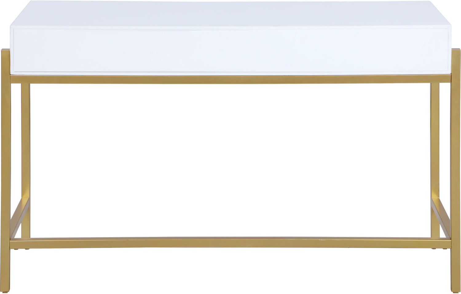 Inject the look of luxury to your home office with this lovely Abigail desk. This sumptuously appointed desk features three full-size drawers for holding supplies that you need close at hand and within easy reach. Crystal-look acrylic drawer pulls add to the luxe look of this glamorous desk, which doubles as a console table if desired. Gold accents reinforce the overall upscale look of the desk, and its high-end lacquer finish helps protect its finish in your busy space.