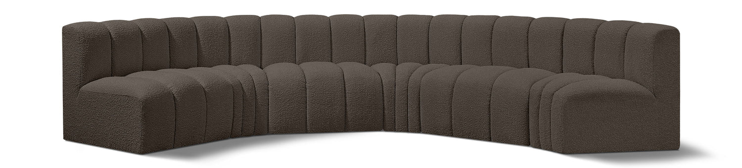 Arc - Boucle Fabric 6 Piece U-Shaped Modular Sofa - Brown