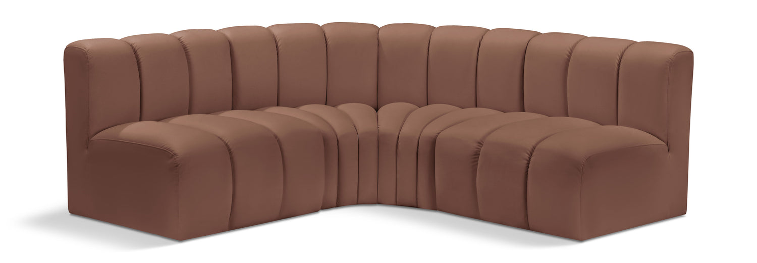 Arc - Faux Leather 4 Piece Corner Modular Sofa - Brown