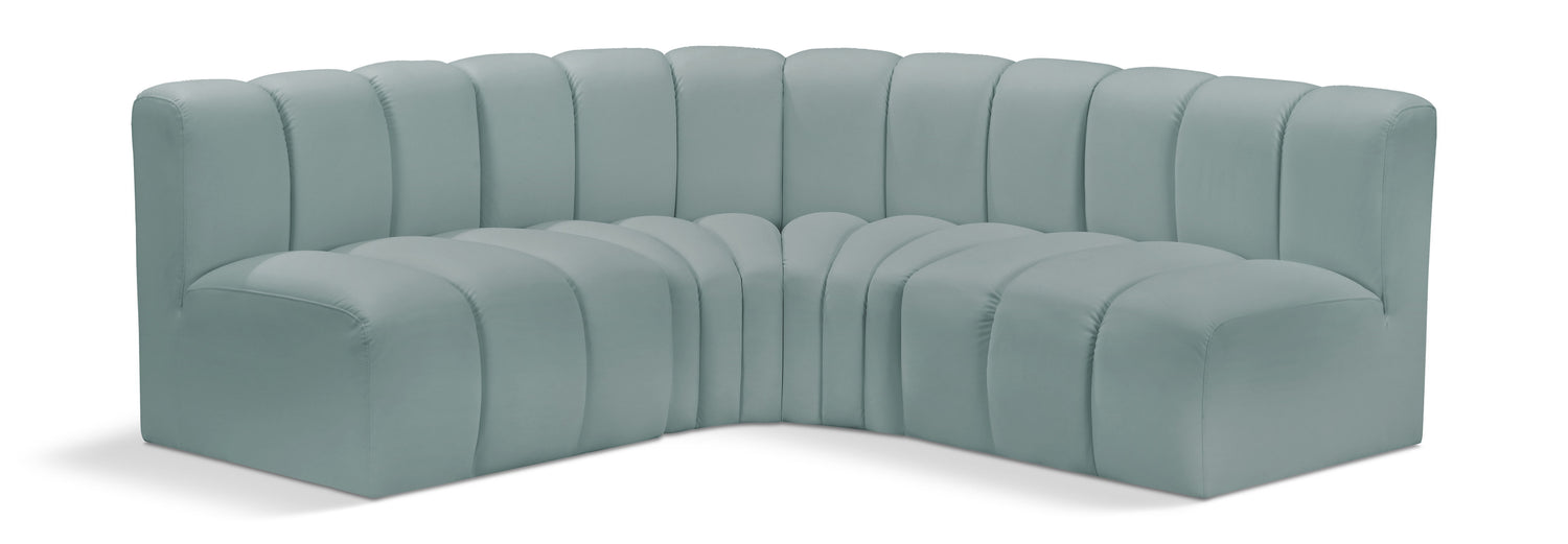 Arc - Faux Leather 4 Piece Corner Modular Sofa - Mint Green