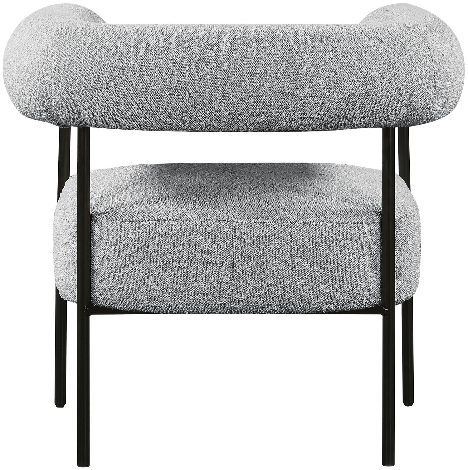 Modernize your home with this Blake accent chair. Featuring rich boucle fabric and a matte metal frame, its contemporary design is sure to catch the eye of all your house guests. Crafted from a mixture of iron and foam, this accent chair is sturdy enough to seat just about anyone. Its curved back provides a comfortable resting place for your spine, and its thick foam cushion gives you a plush place to sit.