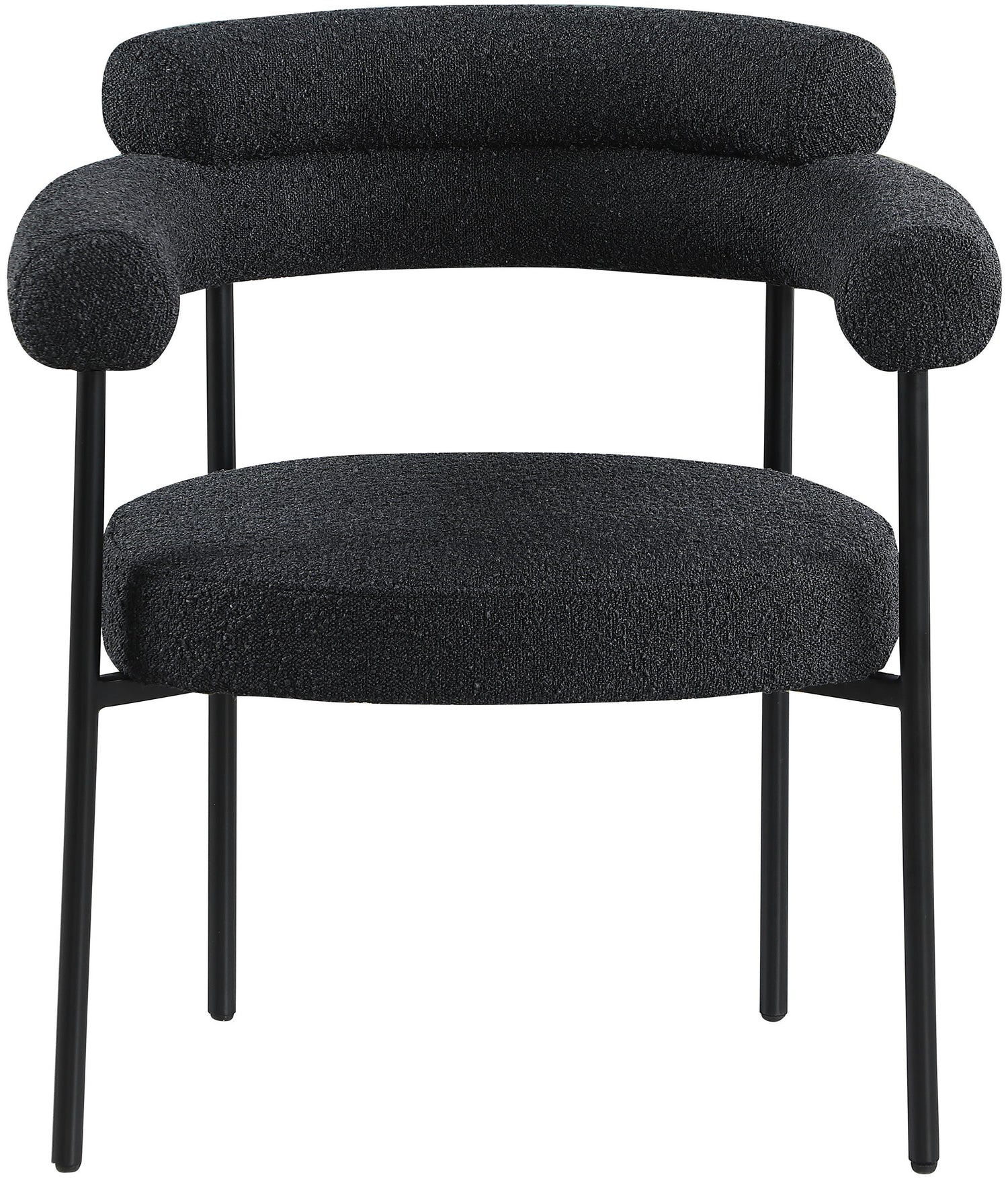 Modernize your dining space with these Blake boucle fabric dining chairs. This pair of contemporary dining chairs features rich boucle fabric, making them comfortable to sit on. Their matte metal frames provide sturdy support so you can relax knowing they ll seat you for years to come. Built to last, these chairs are strong enough for most users. Pair these pretty chairs with your choice of dining table for a custom look.