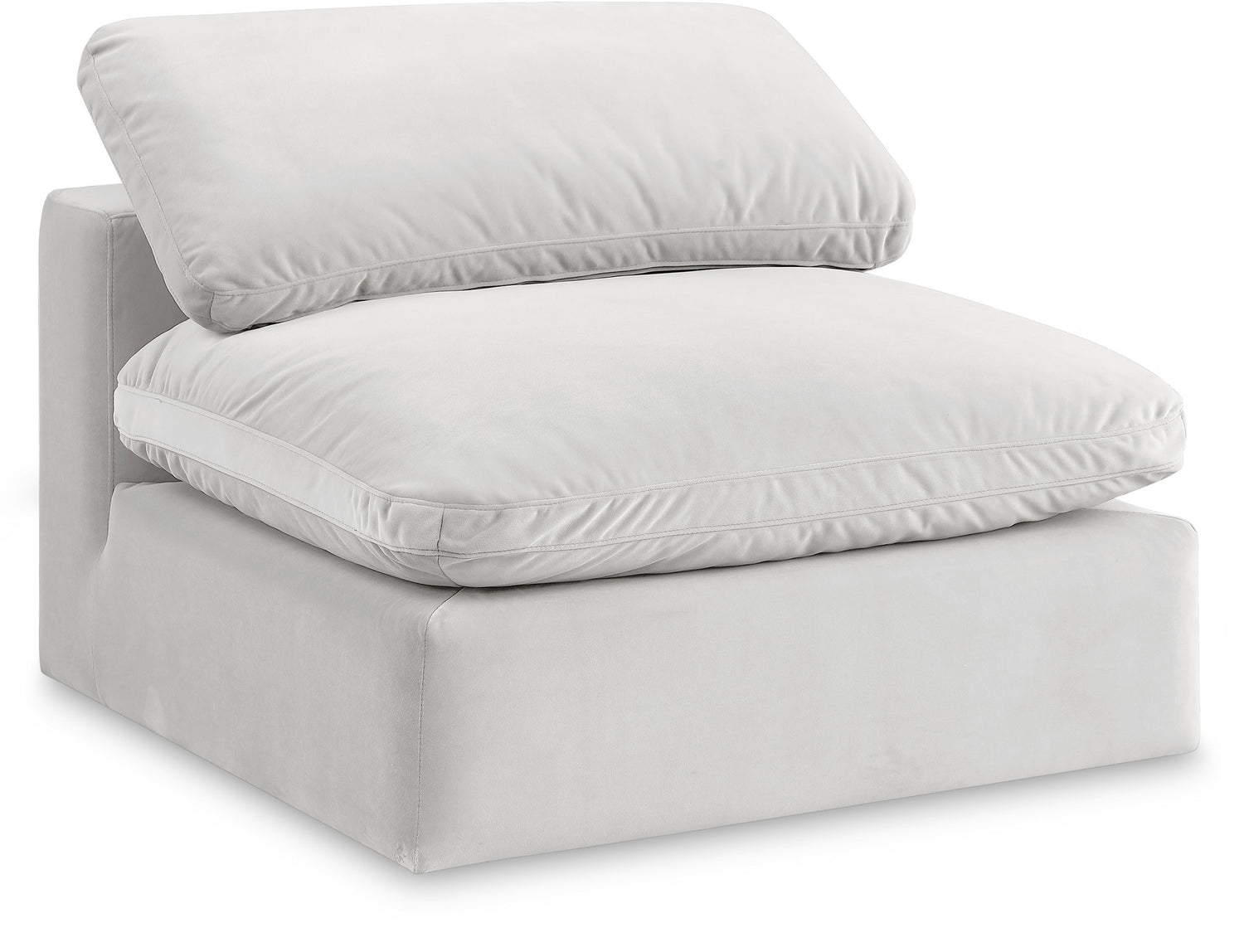 Give your space a whole new look with this Comfy velvet armless chair. This handsome chair fits nicely with other items in the Comfy collection and is a versatile seating option designed for adaptability, comfort and style. Wrapped in rich durable velvet upholstery, this chair offers a plush embrace of overstuffed down feather cushions, carefully crafted to deliver the highest level of comfort. The perfect seat for creating an oasis for relaxation, this chair has thick foam surrounding its frame for added support and coziness.