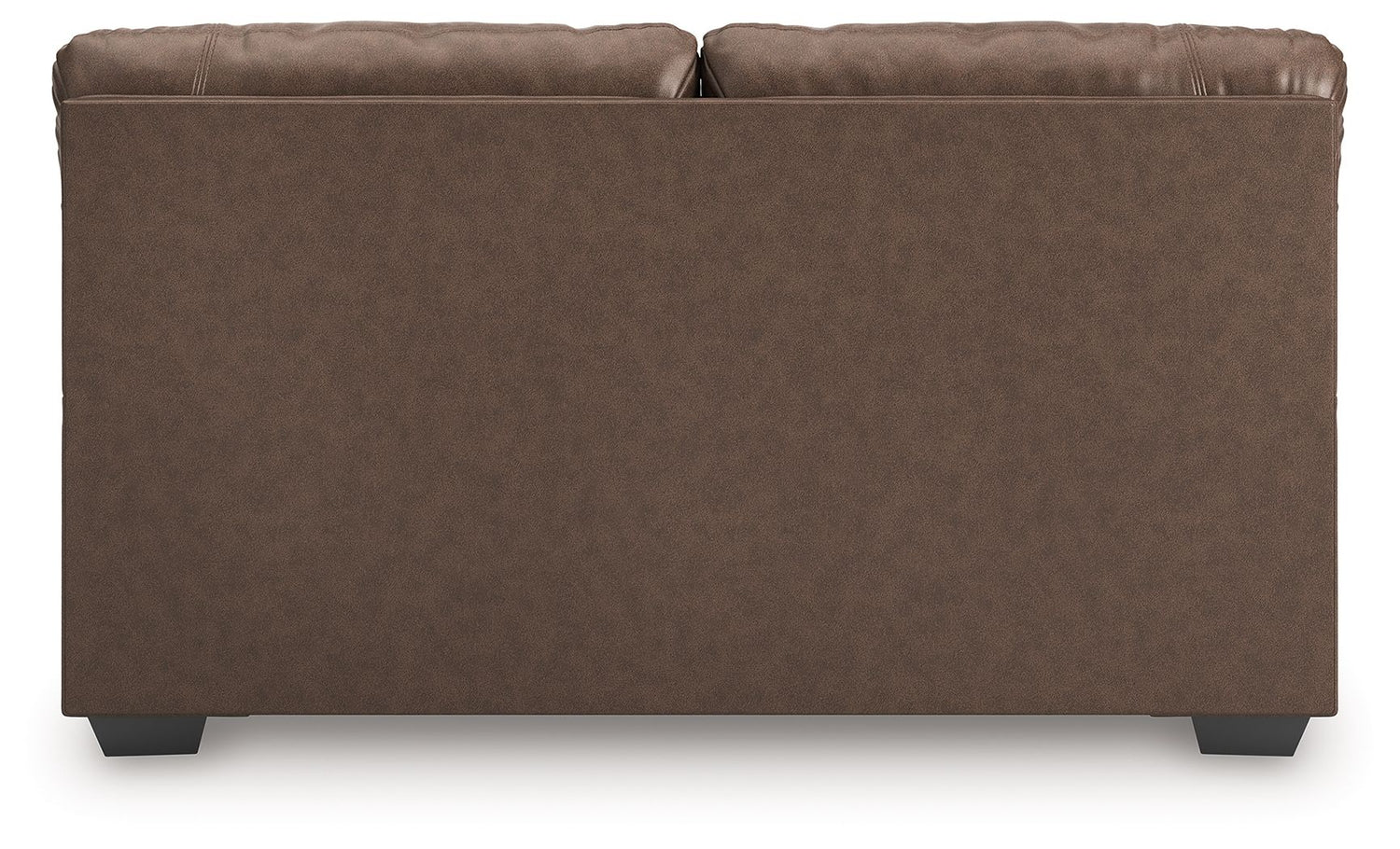 Modern comfort never looked so good. Sporting supremely soft yet durable cushions accented with high-fashion jumbo stitching, this stunning loveseat is the ultimate choice in comfortably cool, contemporary style. Its faux leather indulges with an upscale feel and wows like the real thing.