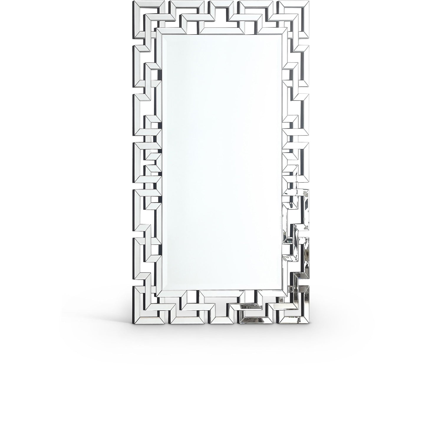 Bring contemporary panache to your home's decor with this mirror. This beautiful mirror has an intertwined geometric frame that draws the eye and stirs excitement in your space. The mirror's oversized footprint ensures that it becomes a fast focal point on your wall or when hung above a console table in a foyer or entryway. Pair it with the Aria table from Meridian Furniture for a complete look.
