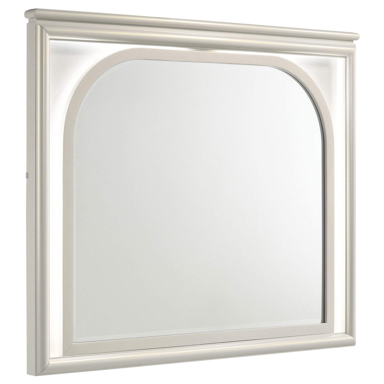 Add a touch of modern elegance to your dresser with this beautifully designed mirror. The shaped beveled glass, framed by a sleek pearl white border, brings a refined charm to any room. Touch LED lighting provides both functionality and a soft, ambient glow, making your morning routine a little brighter. The contemporary design, accented with polished chrome, seamlessly integrates with the dresser. This mirror is the perfect finishing touch to elevate your bedroom decor.