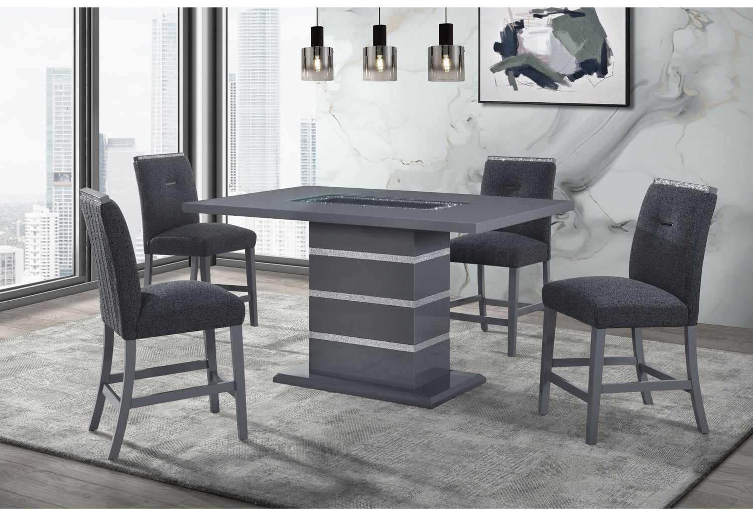 Monaco - Rectangular Bar Table And 4 Bar Stools - Dark Gray
