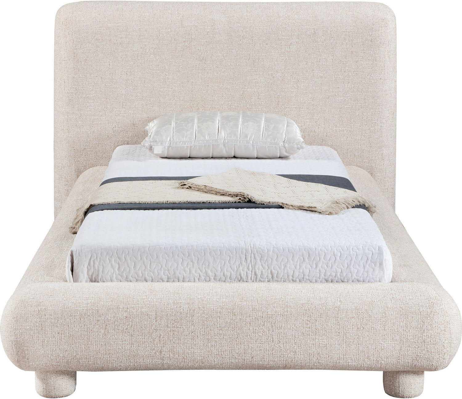 Softly rounded edges and an inviting silhouette define the Blair polyester upholstered full bed, wrapped in a rich interwoven blend of beige, light brown, and cream tones. Its understated texture adds dimension while offering a calming, neutral base for any bedroom aesthetic.