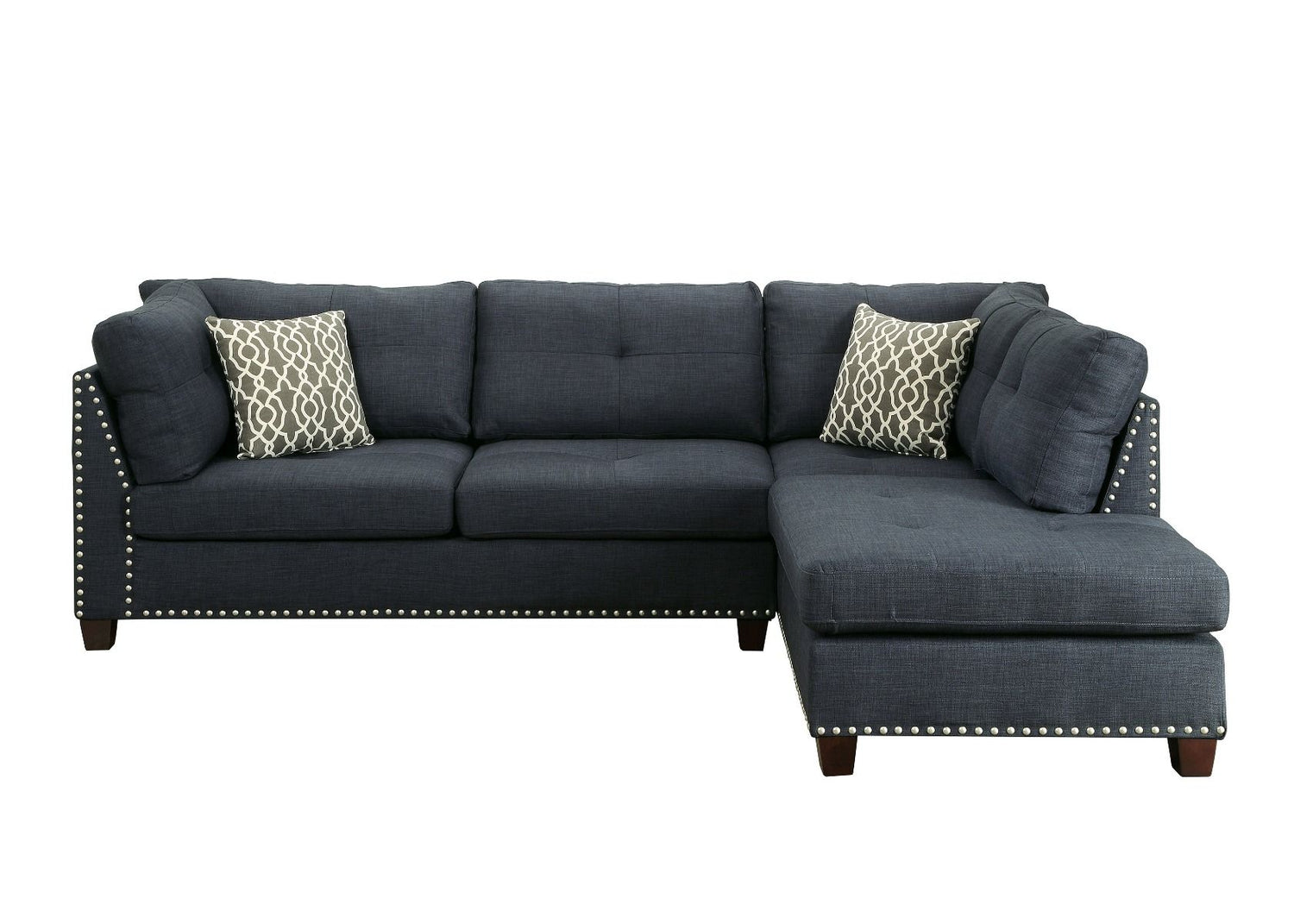 Laurissa - Sectional Sofa & Ottoman With 2 Pillows - Dark Blue Linen