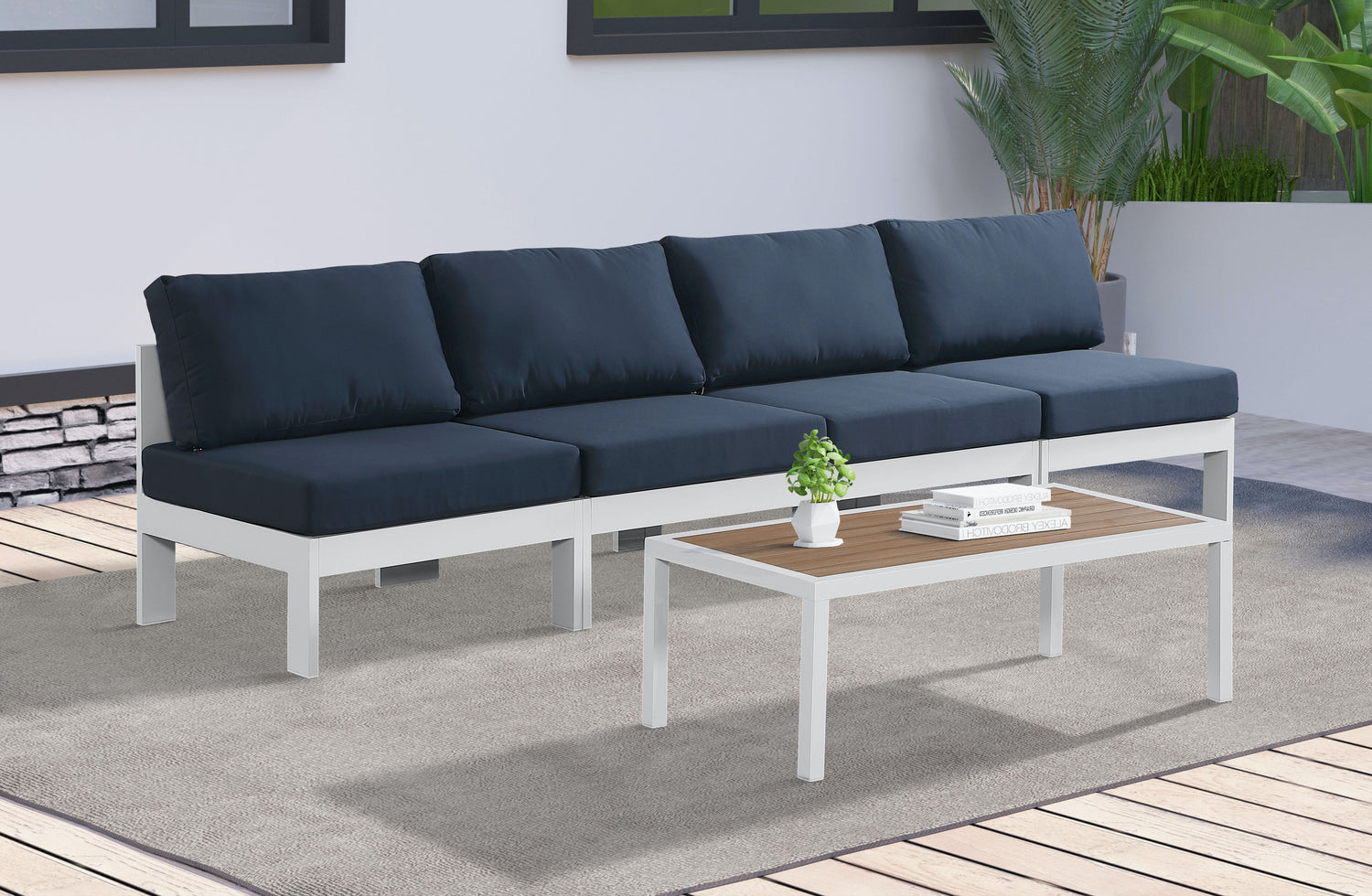 Nizuc - Outdoor Patio 4 Piece Armless Modular Sofa With White Frame - Navy