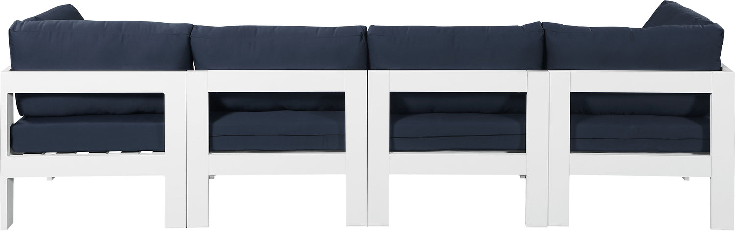 Nizuc - Outdoor Patio 4 Piece Modular Sofa With White Frame - Navy