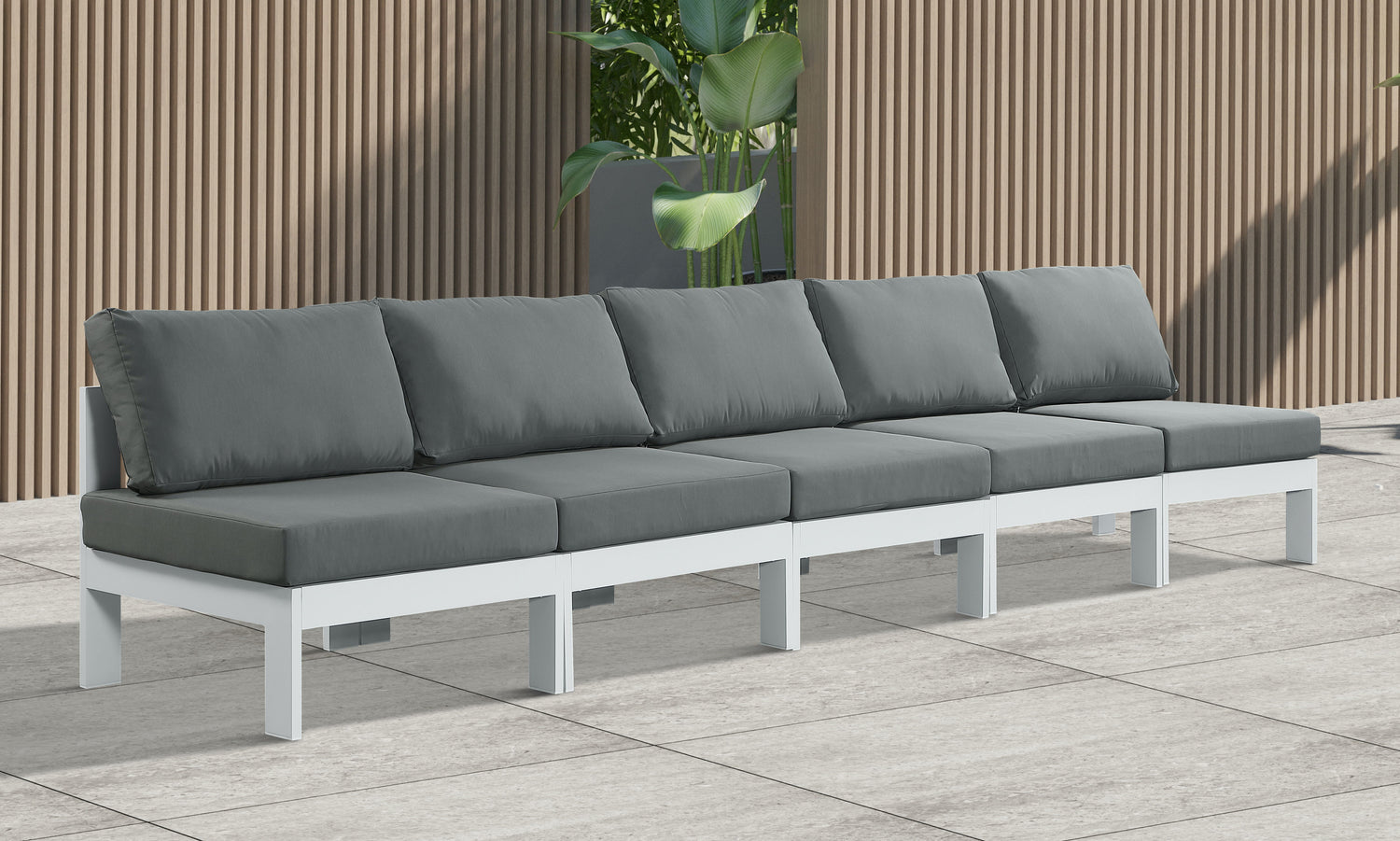 Nizuc - Outdoor Patio 5 Piece Modular Armless Sofa With White Frame - Gray