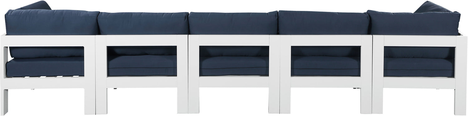 Nizuc - Outdoor Patio 5 Piece Modular Sofa With White Frame - Navy