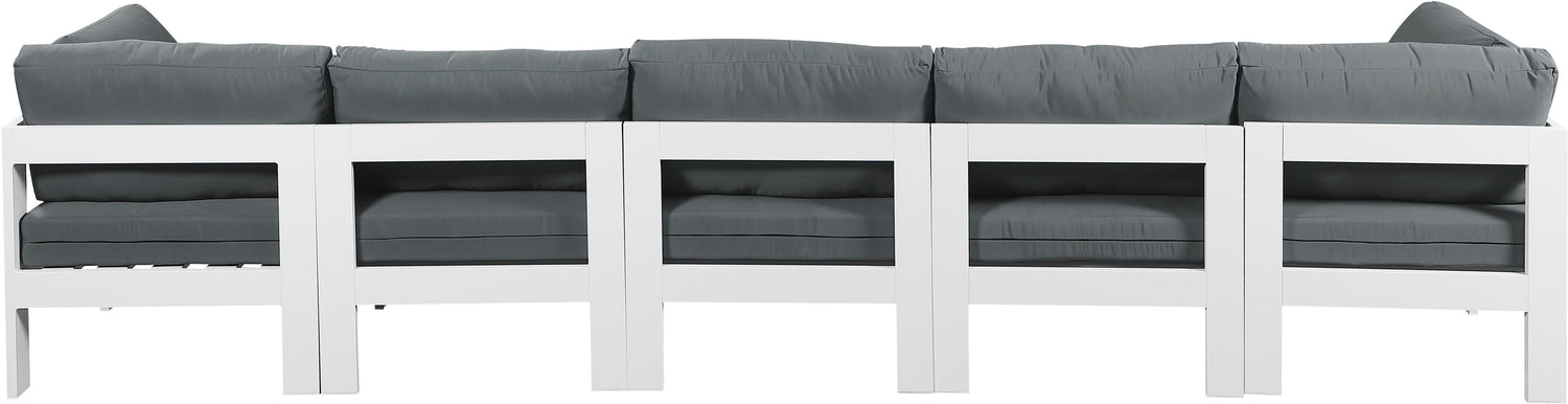 Nizuc - Outdoor Patio 5 Piece Modular Sofa With White Frame - Gray
