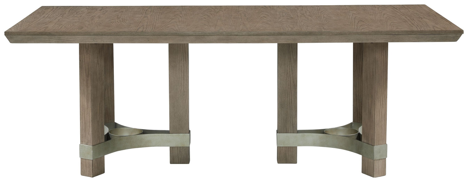 You want your dining room to reflect your refined sensibilities while remaining forward-thinking in design. The simple silhouette of this dining table opens the door to a dining room with the curated look and subtle flair you desire. The piece's elegant waxy gray finish gets an added touch of luxury with a double-pedestal base and beveled-edge top, showing remarkable attention to detail. Whether you're hosting family meals or holiday entertaining, this table is a place to gather around in streamlined style.
