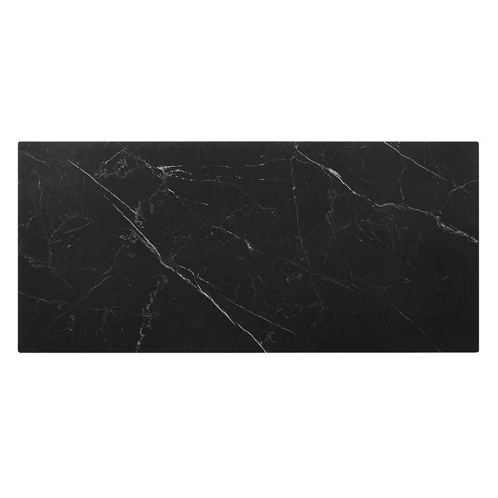 This dining set includes a rectangular table with a fixed top featuring sintered stone and tempered glass. The padded seat and back cushion chairs offer comfort and style. Complementing the set, the two-tone server boasts metal side glide drawers with 2/3 extension and safety stop, making it both functional and elegant. Destin collection combination is perfect for sophisticated dining spaces.