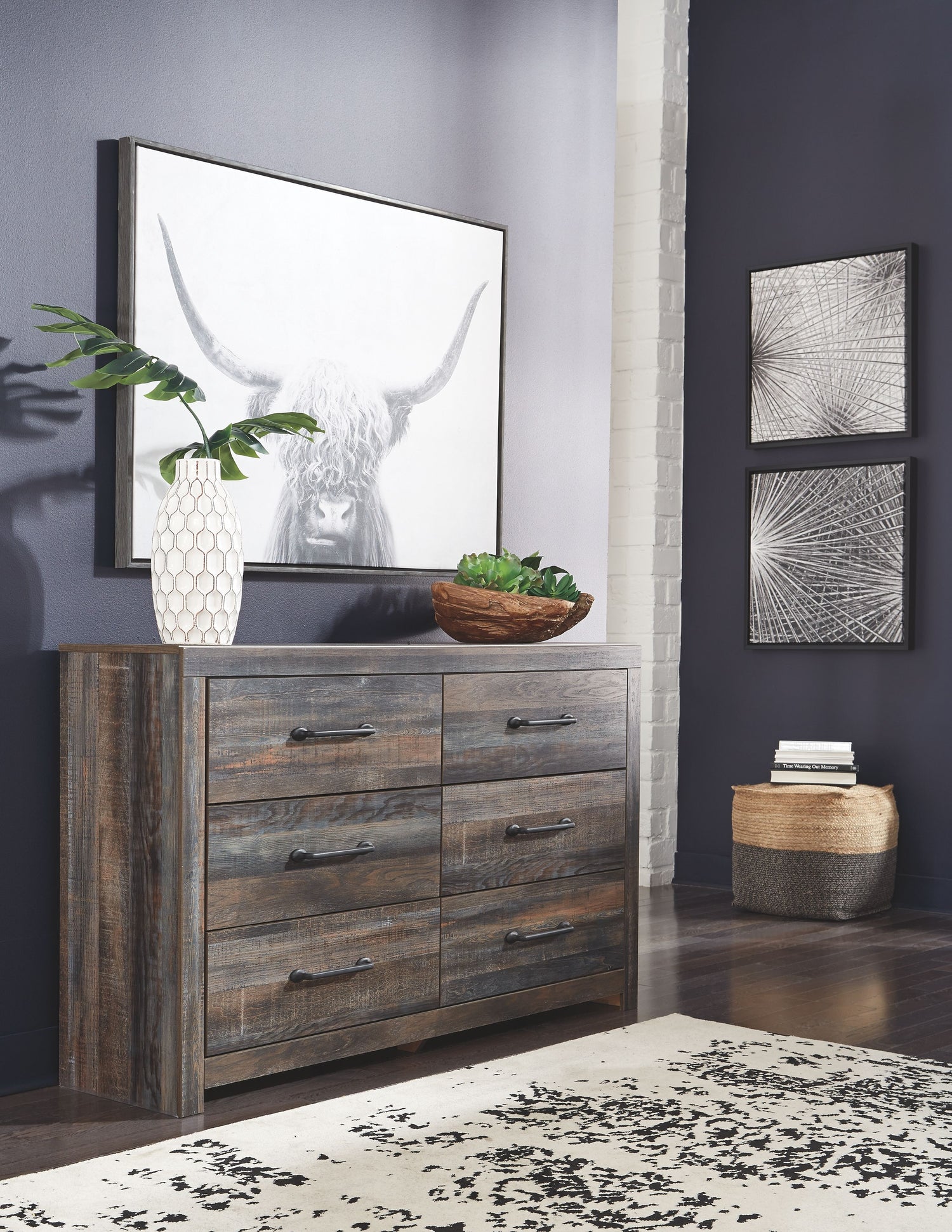 Drystan - Brown / Beige - Six Drawer Dresser