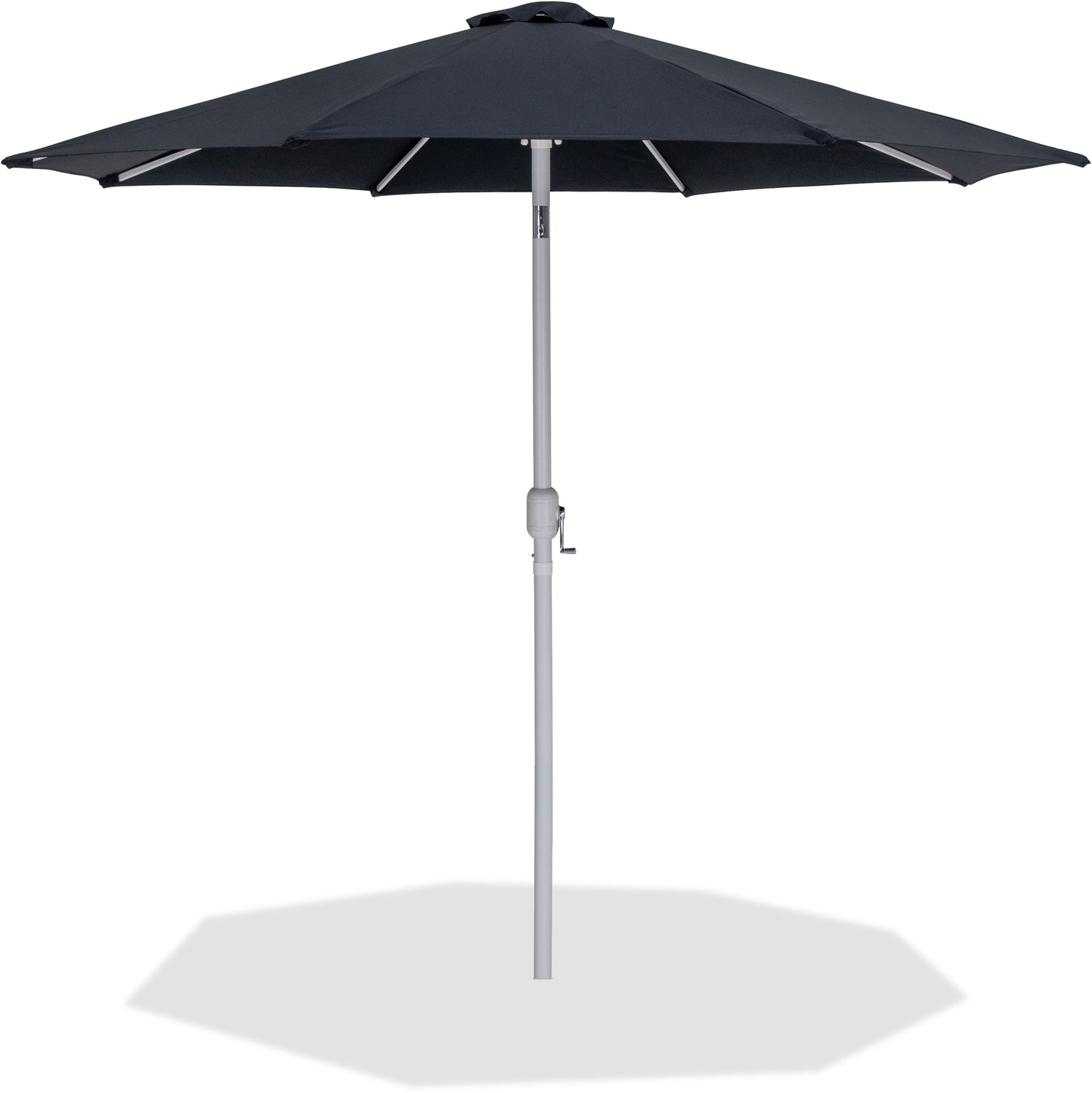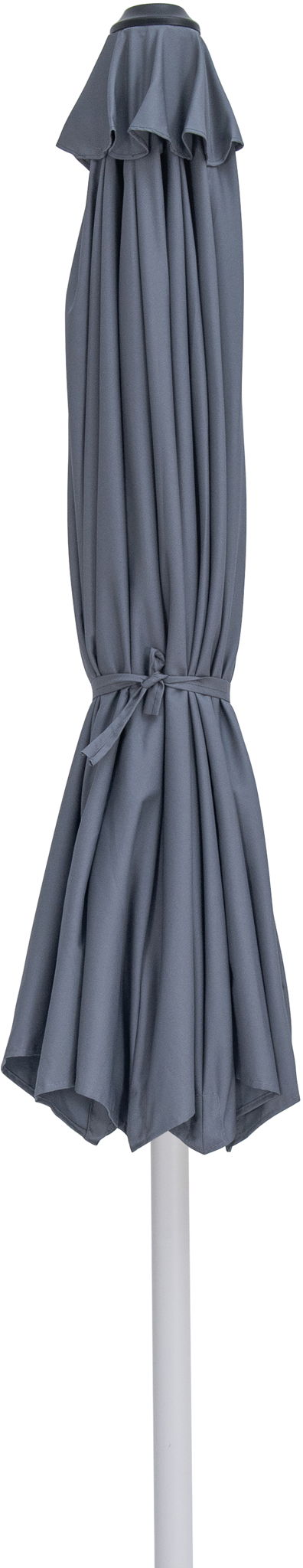 Bask in the shade wherever it's needed when you bring home this Fiji fabric and matte white aluminum patio umbrella. This ingenious umbrella can be used as a standalone umbrella on a deck or patio - or add it to your choice of table for a sturdy solution for hiding from the sun's rays. The aluminum pole weathers the elements like a champ, and the umbrella is crafted from water-resistant fabric for a beautiful, lasting look.