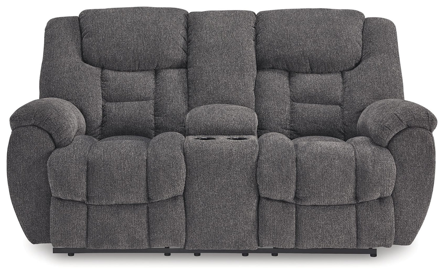 Foreside - Charcoal - Dbl Reclining Loveseat with Console