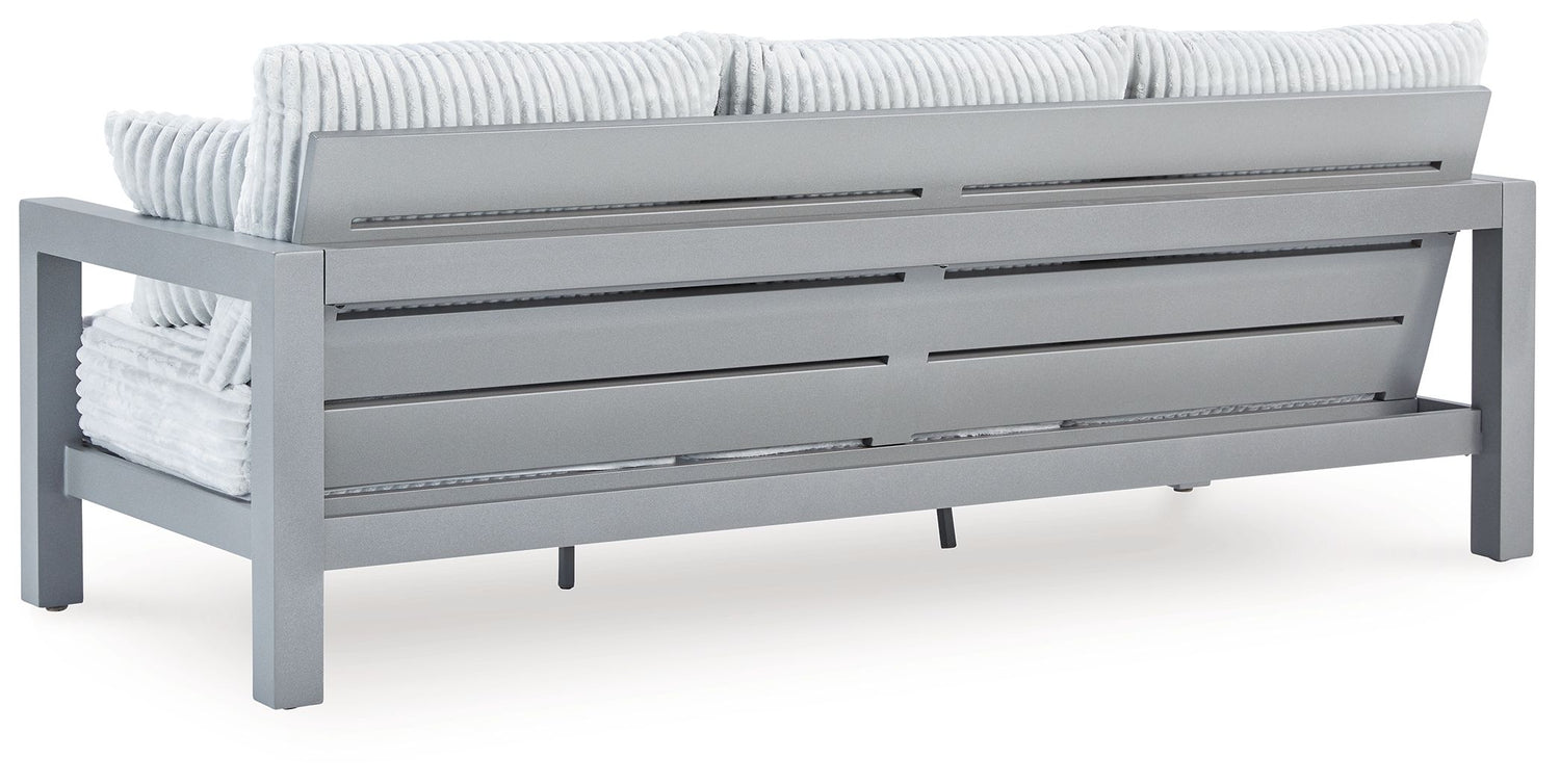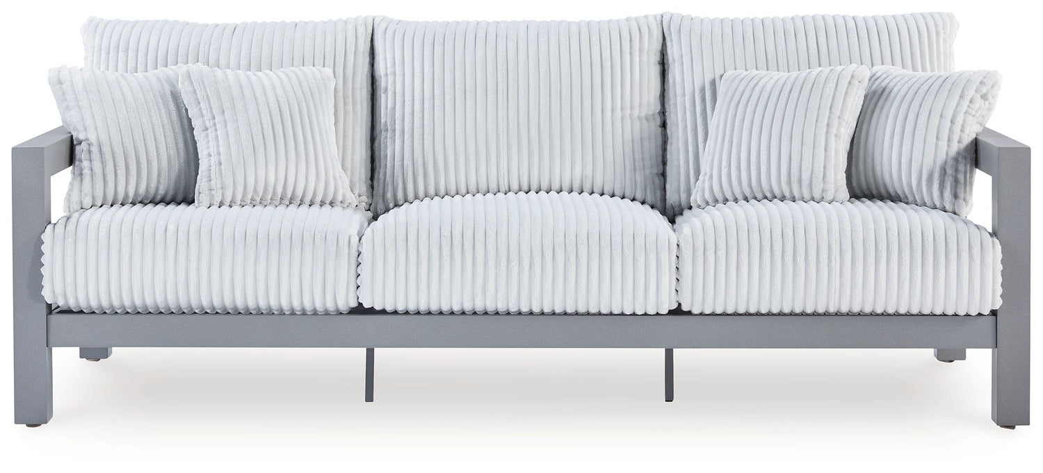 Indulge in luxe outside living without sacrificing longevity. This outdoor sofa combines on-trend texture with a sleek aluminum frame. Lounge poolside or on the porch—the comfy cushions are a chic spot for you and a partner or two to soak up the sun. And with cleanable, UV-resistant Nuvella® fabric in a showstopping corded look, style and durability go hand in hand.
