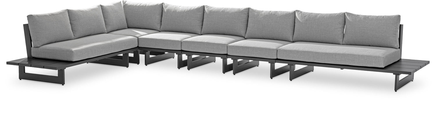 Maldives - 6 Piece Water Resistant Outdoor Patio Modular Left Arm Facing Sectional With Gray Base - Gray