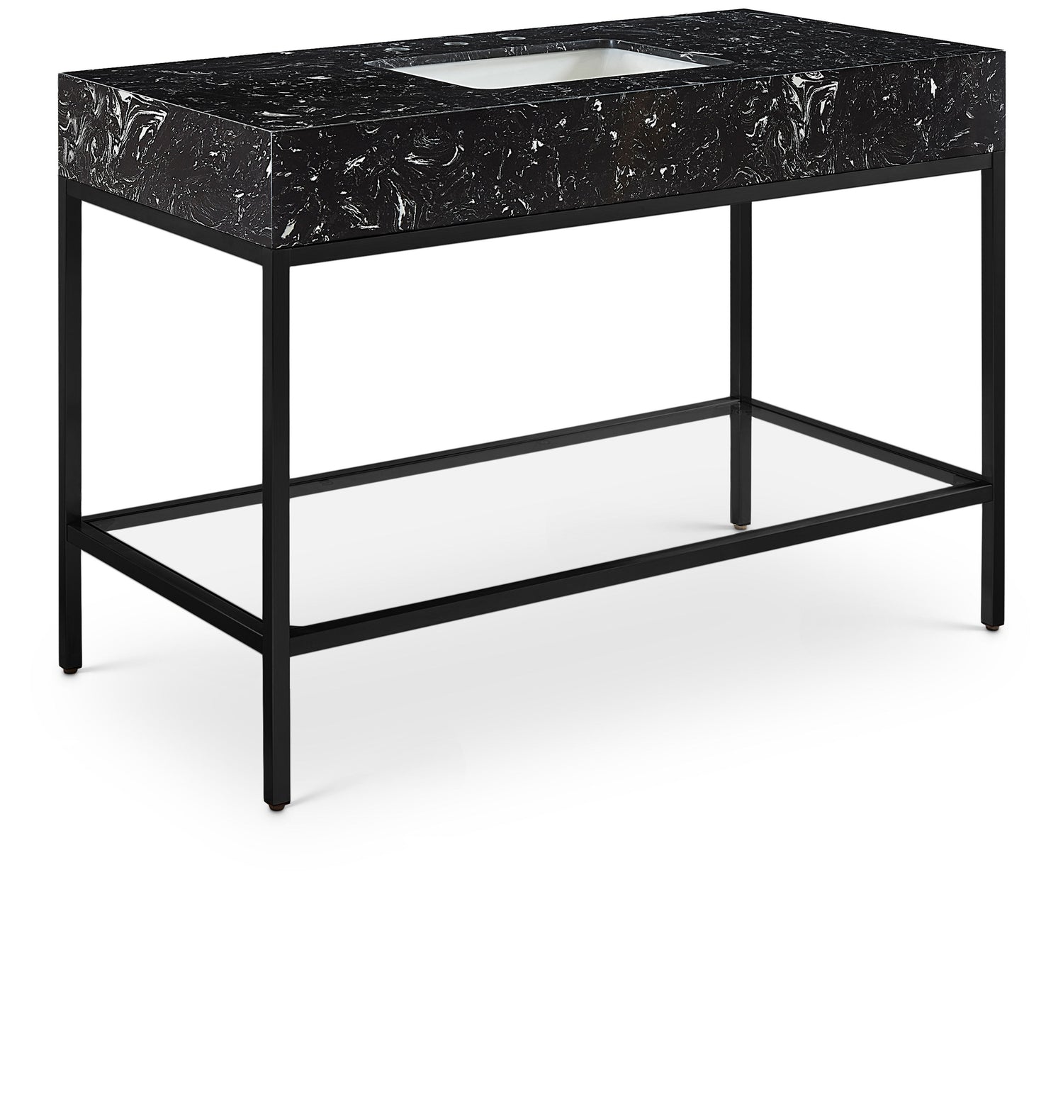 Marmo - 48" Engineered Marble Bathroom Vanity With Black Base - Black